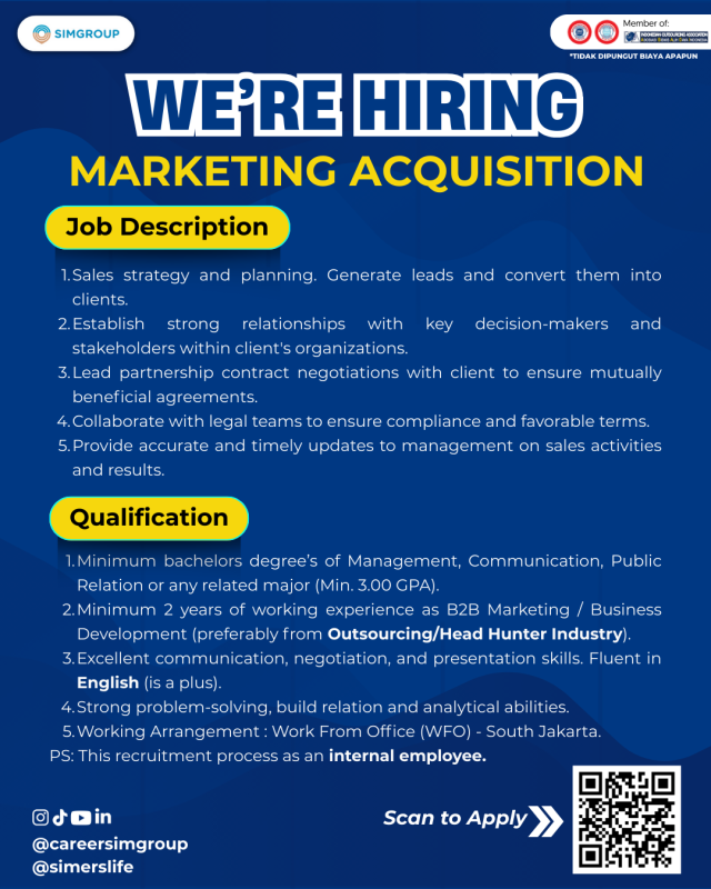 PT. Swakarya Insan Mandiri (SIMGROUP) telah dipercaya oleh puluhan perusahaan dari berbagai industri dalam memberikan jasa alih daya atau outsourcing management seperti: employee supply management, sales process management, office cleaning service, dan lainnya. Untuk informasi lebih lengkap tentang layanan outsourcing kami Anda dapat menghubungi kami di sini.